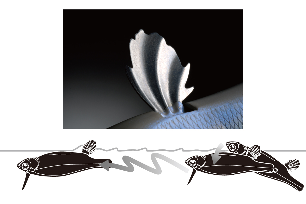 En récupération lente, il génère une action de super-roulis en surface, avec la nageoire ventrale effectuant une action de "tailing" (coup de queue), créant une vague triangulaire unique et séduisante.