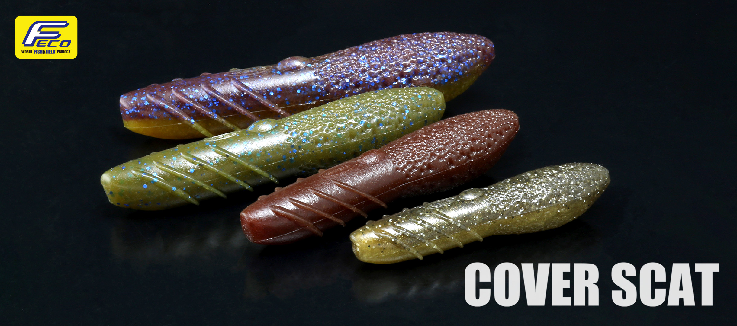 Le Cover Scat, développé spécifiquement pour la stratégie complexe du Cover Fishing (pêche sur les obstacles), est un no-sinker fall bait (leurre de chute sans plomb) au corps volumineux mais de dimensions compactes, fabriqué dans un matériau à haute densité, avec une concentration en sel de $40\%$.