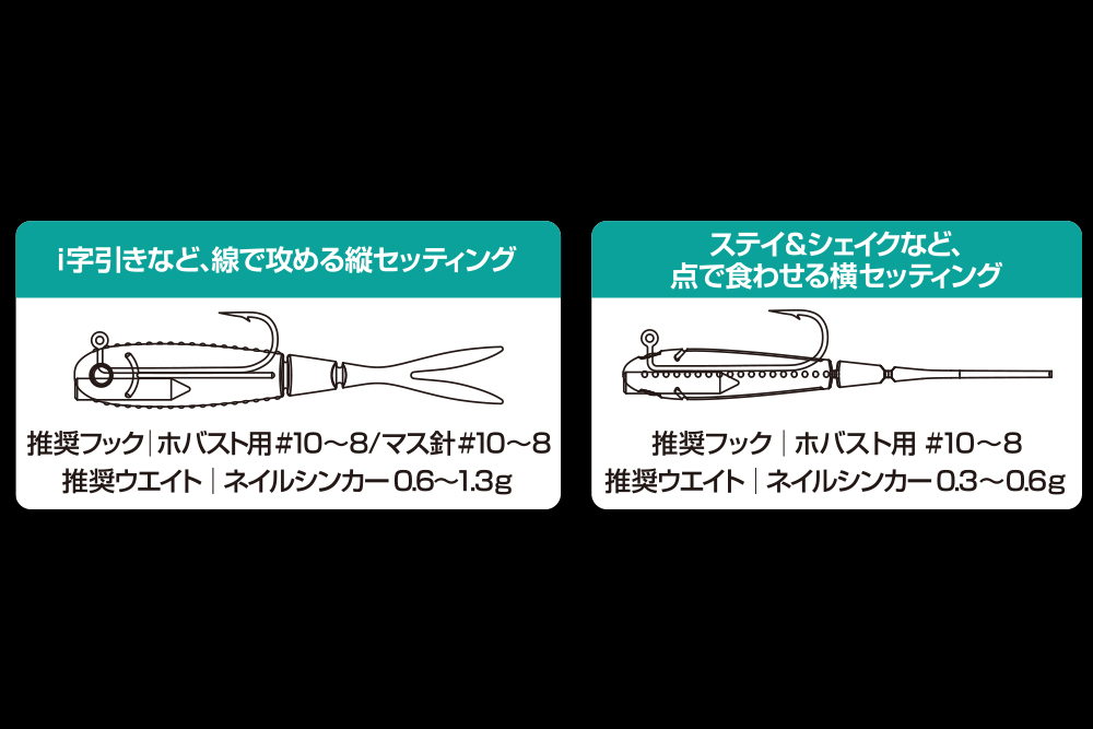 - Innesco Orizzontale (Side Hooking): per una presentazione più lenta e delicata, per i bass più schizzinosi.